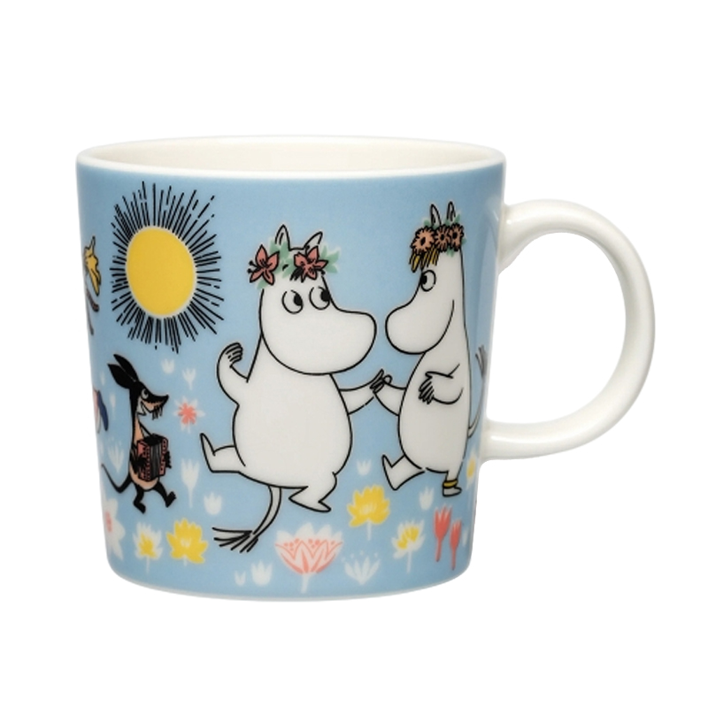 Kuvituksessa Muumilaakson väki tanssii kukkakedolla vaaleansinistä taivasta vasten. Iloinen kesäinen tunnelma tekee kokoelman tuotteista täydellisiä kesäkäyttöön, erityisesti juhannuksen juhlintaan, mistä kertovat myös Muumipeikon ja Niiskuneidin kukkaseppeleet sekä kirkkaasti paistava aurinko. Kuvien inspiraationa ovat toimineet Tove ja Lars Janssonin sarjakuvat 1950–60-luvuilta, joissa keskeisenä teemana ovat rakkaus, mustasukkaisuus ja tanssi keskellä kesäistä luontoa.