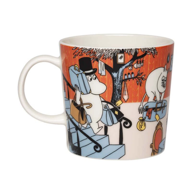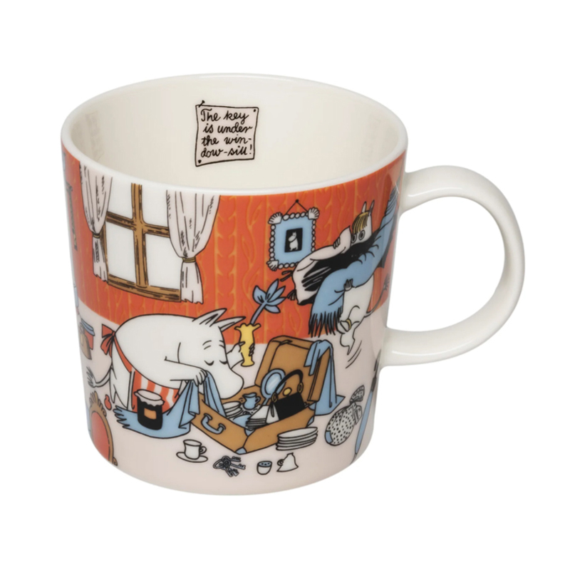 Ensimmäisen osan kuvitus kuvaa muumien valmistautumista Ranskan Rivieralle, inspiraationaan Tove Janssonin Muumiperhe Rivieralla -sarjakuva (1955) sekä yksityiskohtia muista klassikkosarjakuvista. Hauskana yksityiskohtana mukin ja lautasen koristelussa on muistilappu tekstillä “The key is under the window-sill!”.
